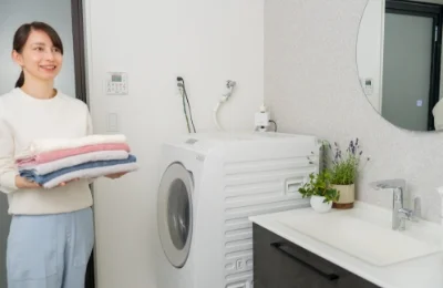 洗濯後のオゾン水は〈酸素〉と〈水〉に戻るので、薬剤のような残留性は一切ありません。デリケートな赤ちゃんやペット、アレルギー体質やお肌の弱い方の衣類にも安心してご使用いただけます。
